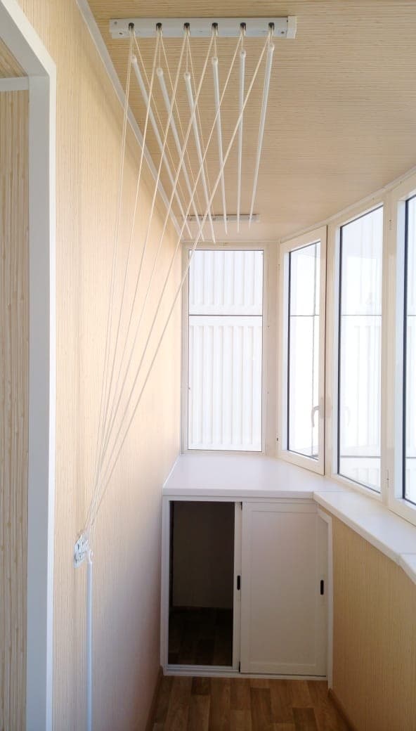 Выполненные работы: Остекление лоджии профилем REHAU Grazio, Утепление и отделка ламинированными панелями, Проводка электрики и установка светильников, Вывоз мусора